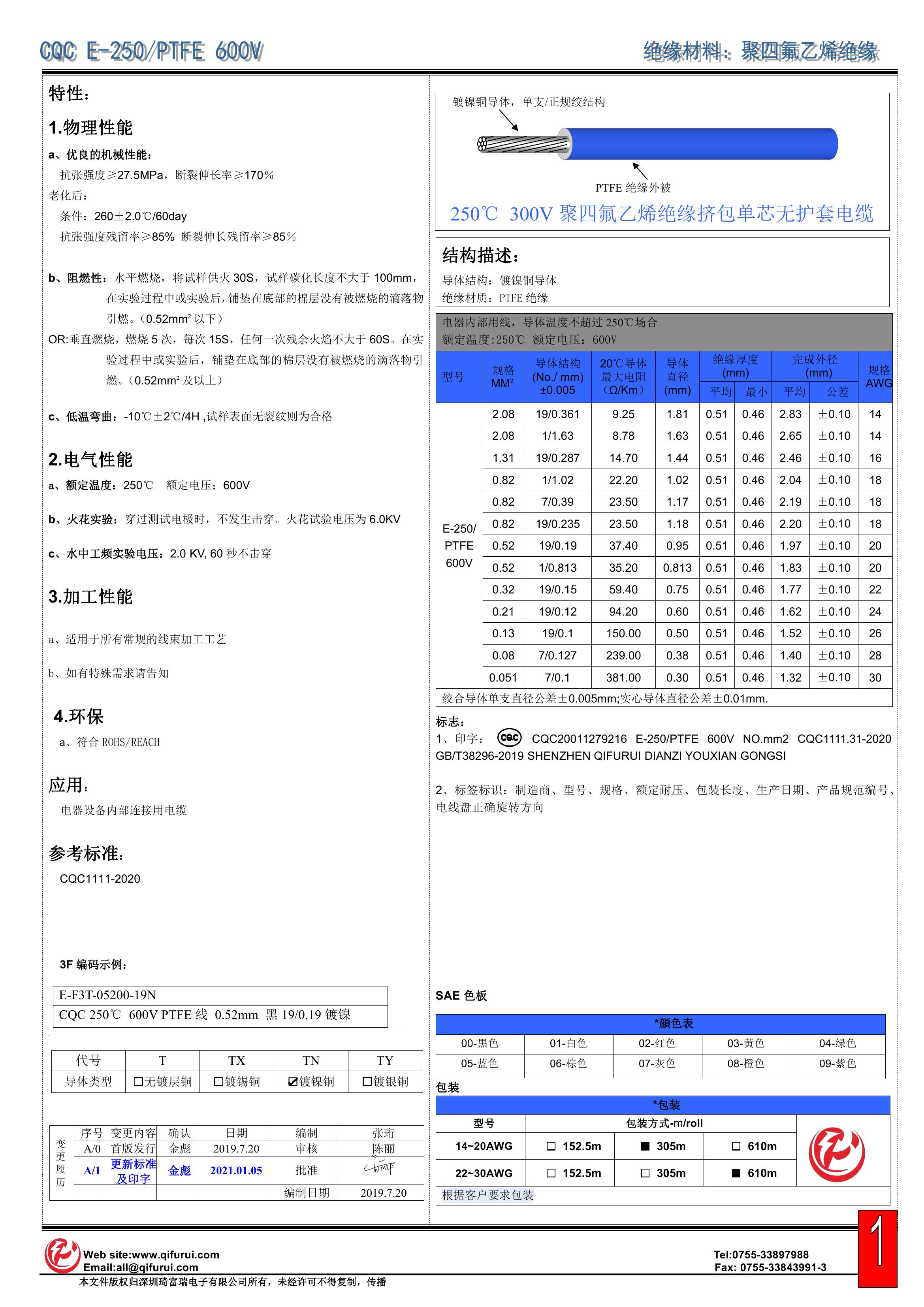E-250 PTFE 600V