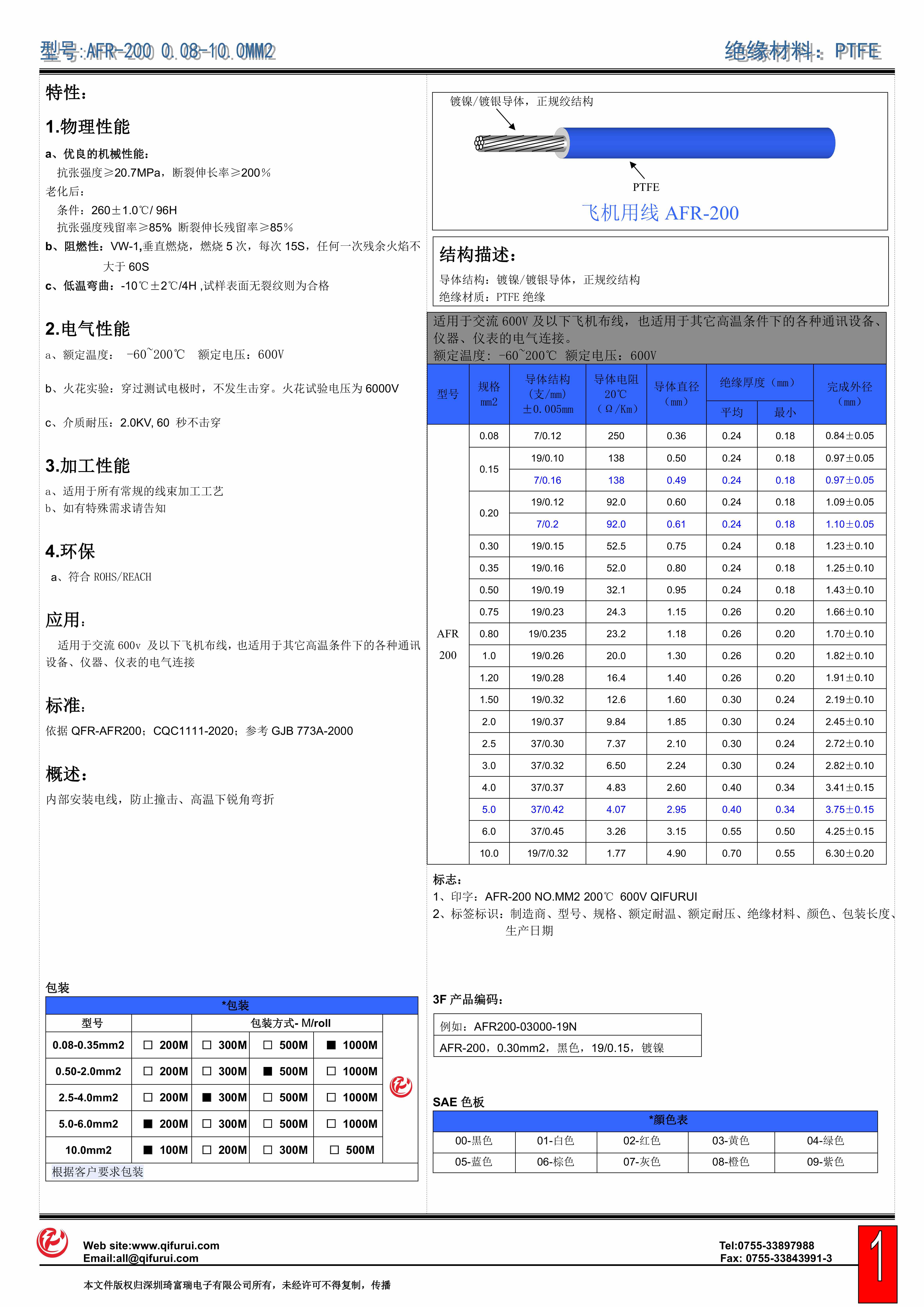 飛機用線 聚四氟乙烯AFR-200